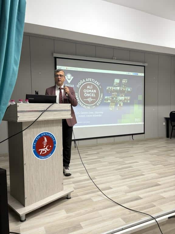 Okulumuzda TÜBİTAK Bilim Söyleşileri Programı kapsamında Prof. Dr. Ali Osman Öncel tarafından öğrencilerimize Doğal Afet Farkındalık Eğitimi verildi.